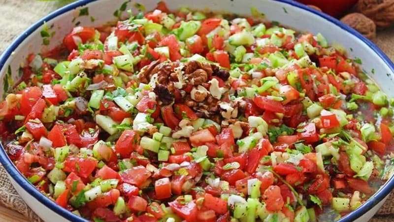Kartepe Sukay Restaurant, misafirlerine özel ve lezzetli bir seçenek sunmak için özenle hazırladığı Gavurdağı Salatası'nı sunmaktan gurur duyar. Domates, salatalık, kuru soğan, biber, ceviz, maydanoz ve nar ekşili sos ile zenginleştirilmiş bu salata, ana yemeklerin yanında sofraların vazgeçilmezi haline gelmiştir.