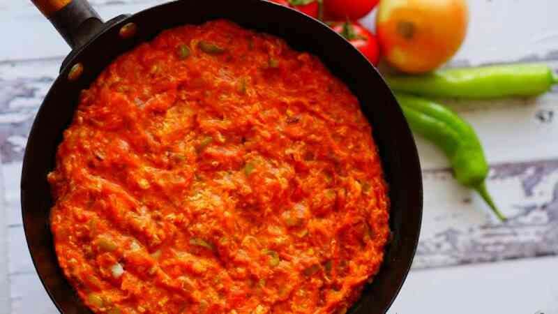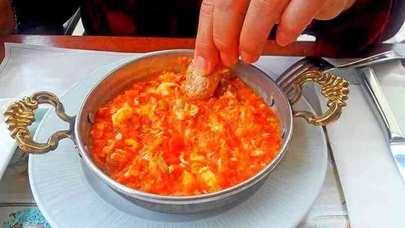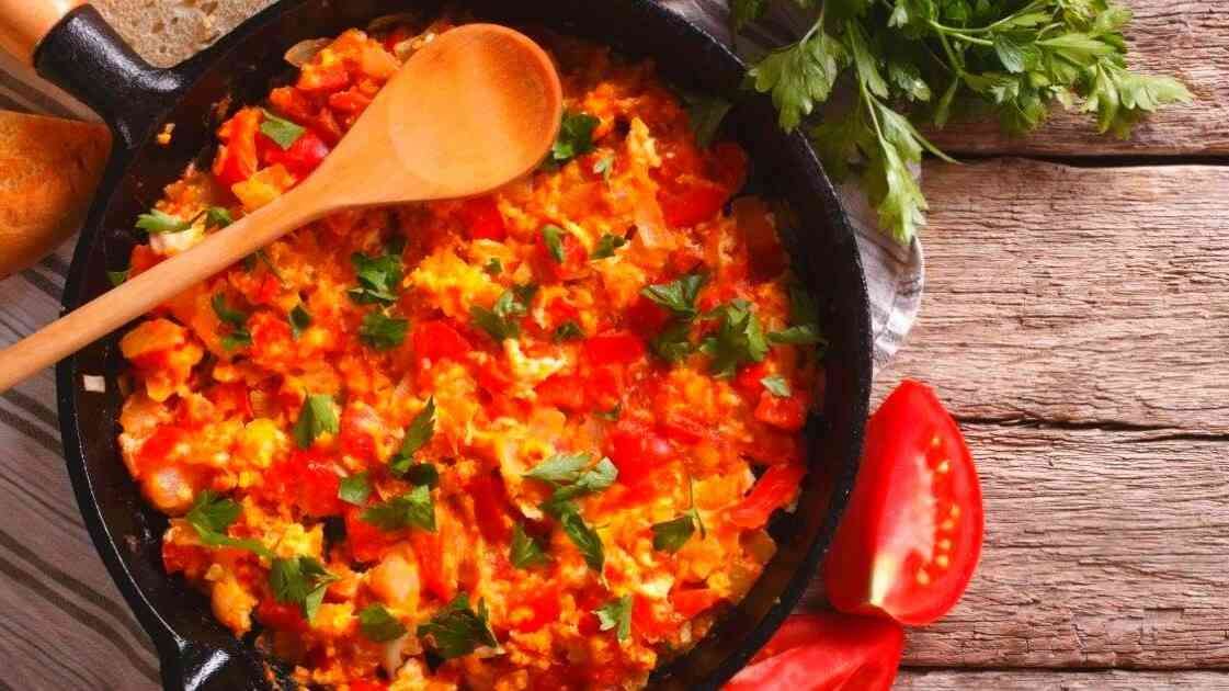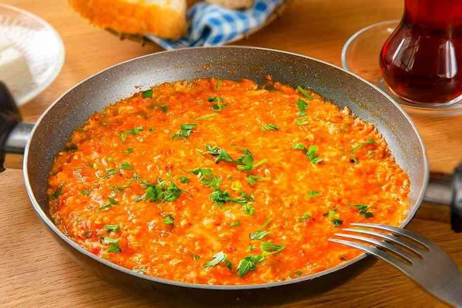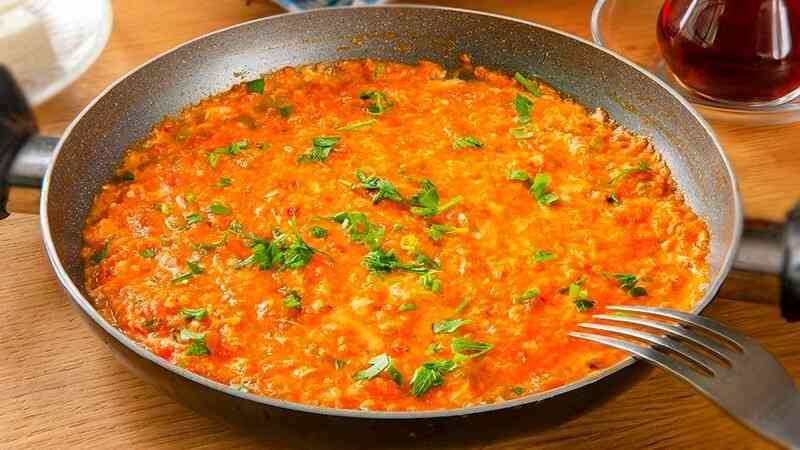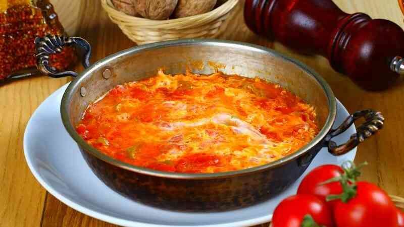 Serpme Kahvaltı yaparken Olmazsa Olmaz, Menemen, sıvı yağ veya zeytinyağı, yumurta, yeşil biber veya sivri biber yada kapya biber, domates ve isteğe bağlı olarak soğan , tuz, karabiber, kullanılarak yapılan bir Türk yemeğidir.