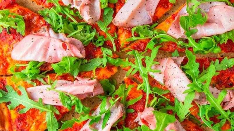 Özel El Açması Pizza Hamuru Üzerine Mozzarella Peyniri Pastırma