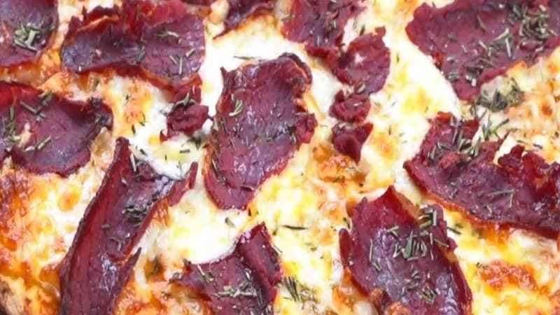 Türk Mutfağında yerini almış olan meşhur Pastırmalı Pizza.