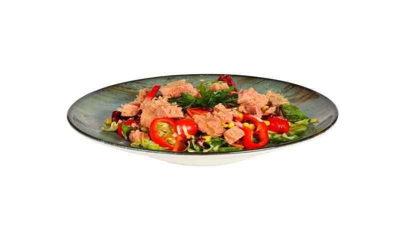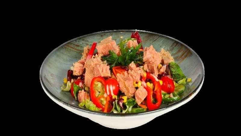 Ton Balıklı Salata, Kartepe Sukay Restaurant'ın deneyimli aşçıları tarafından özenle hazırlanır. Taze ve çeşitli Akdeniz yeşillikleri, dilimlenmiş domatesler, salatalıklar, tane mısır ve limon ile bir araya getirilir. Ardından nar ekşili sos ve ton balığı eklenerek servis edilir.
